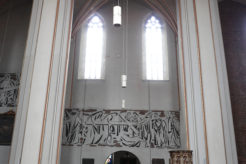 Im Fall der verputzten Gewölberippen besteht die ernste Befürchtung, dass durch das Entfernen von Putz aus Ziegelprofilen die empfindlichen und extrem dünnen Ziegelsteine ernsthaft beschädigt werden könnten. Es sei daran erinnert, dass die dekorative Imitationsmalerei geometrischer Formen auf Rippen am Ende des 15. und 16. Jahrhunderts häufig verwendet wurde. Besonders in Schlesien (z.B. Heiligenkreuzkirche in Wrocław) wurden handwerkliche Wege zur Entwicklung der Farbtextur in Form von Ziegelverband und Ziegel- und Putzkombinationen, ergänzt durch Malmaterialien, beschritten. Deshalb sollte man auf den Rippen auf den vorhandenen Putzschichten eine Malimitation von Ziegelsteinen durchführen. Die vorgeschlagene ästhetische Gestaltung von Bogenrippen wird durch die Analogie von Methoden und Techniken gerechtfertigt, die vor allem in Schlesien üblich sind.
